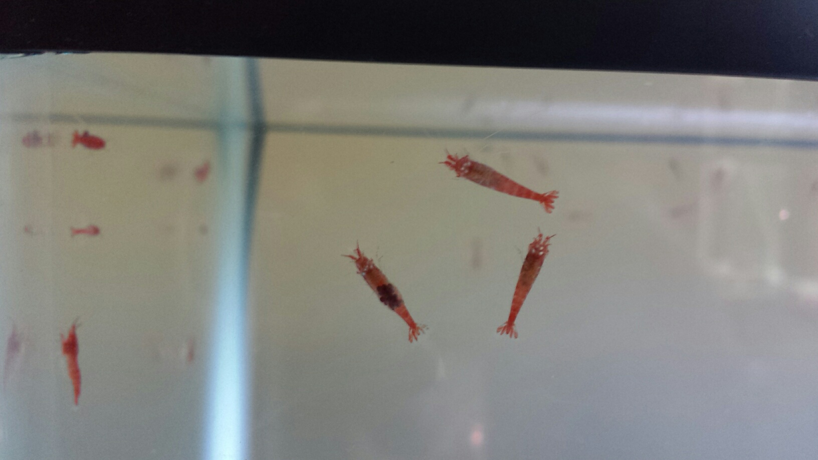 You're describing mating behavior.tooth wrote:For the past several days my 'banded female' of last year's fame (lots of breeding) has been swimming erratically, swimming up to the top of the tank, then drifting down, sometimes tilting sideways or even upside down without swimming movements. Then she would sit on the substrate for a while and repeat the whole thing. It was as if her buoyancy/proprioception were not right. Her odd behavior would attract the attention of other shrimp which would harass her a little--swimming around her and bumping into her.