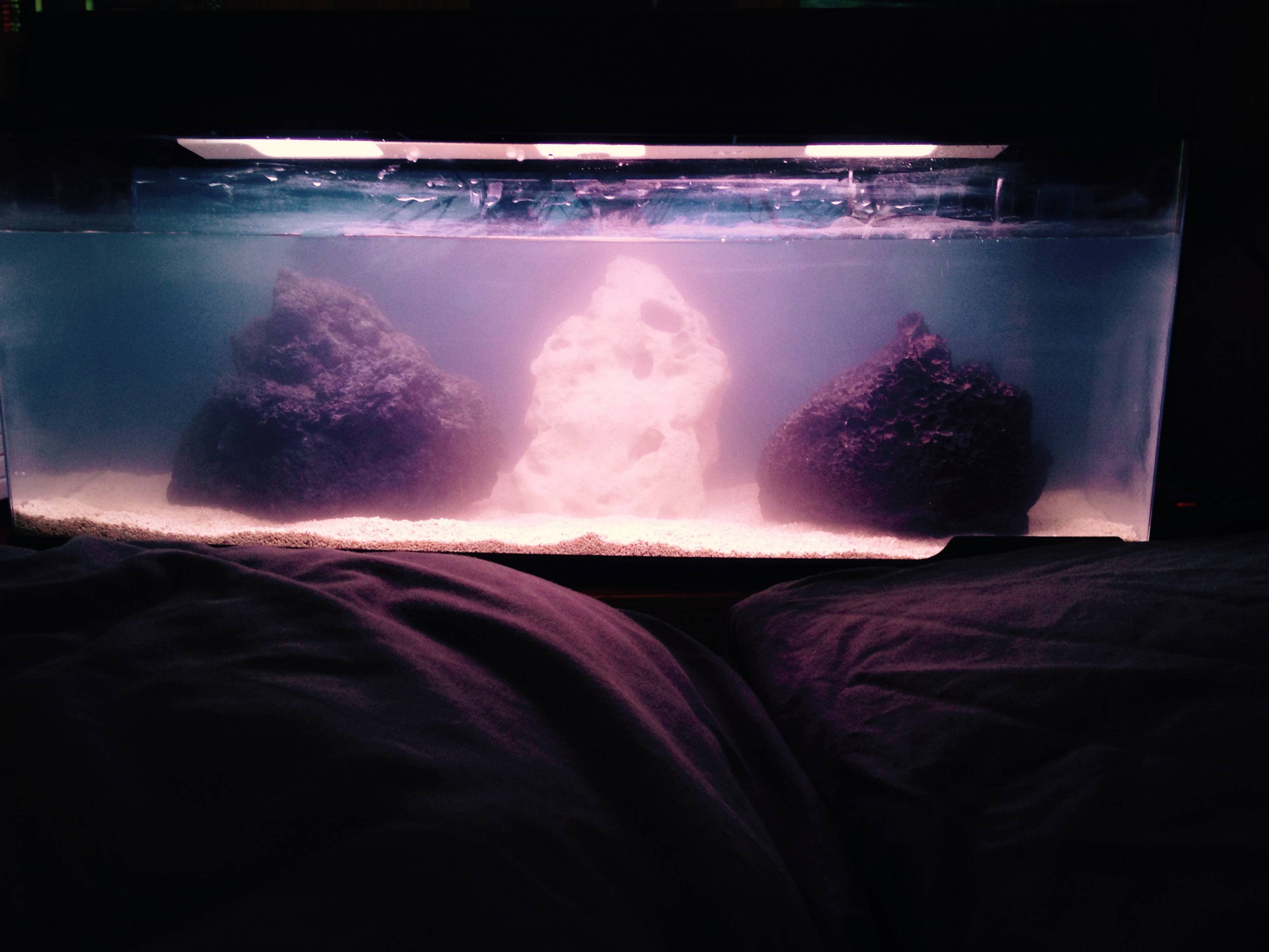 One more question, the water is still too cloudy for my liking (stirred it up when repositioning the rocks). I have no experience with aragonite so does anyone know if the filter will clear it if it stays on long enough and if it will stay clear even after the filter is gone?
