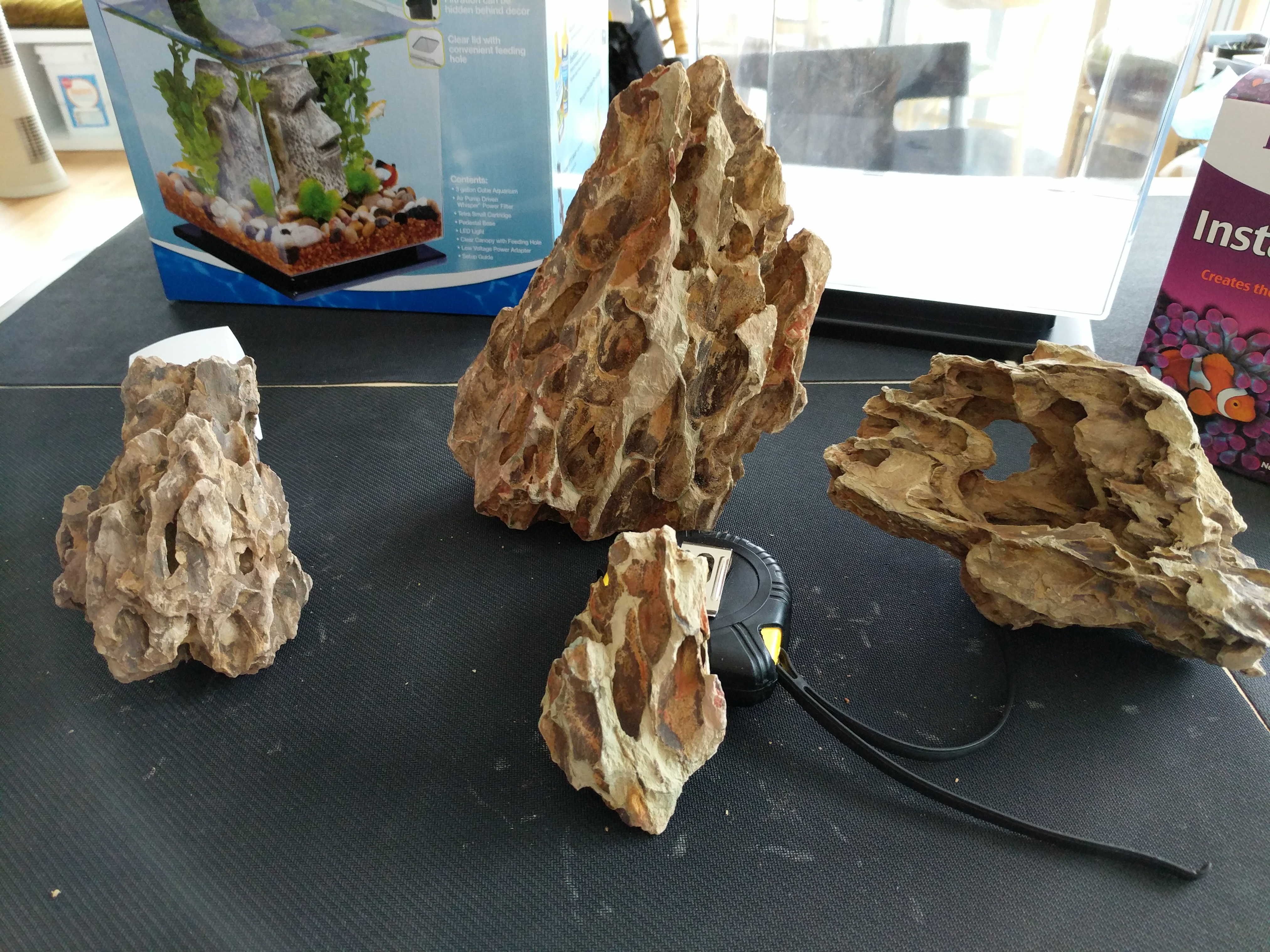 You're right about the rocks being a tight fit... I spent 30 minutes trying to figure out how to get all of them to fit. Here's what I've come up with.