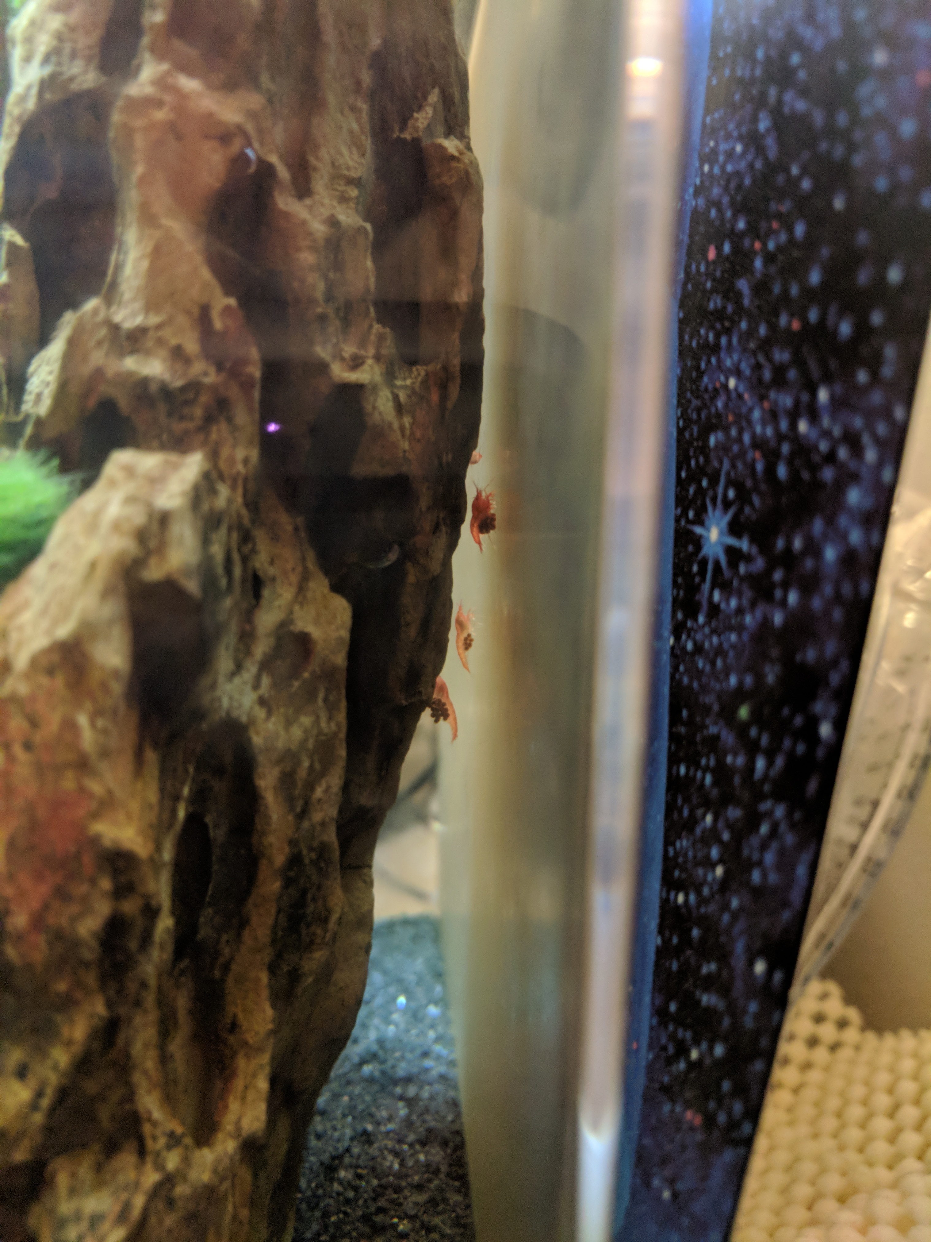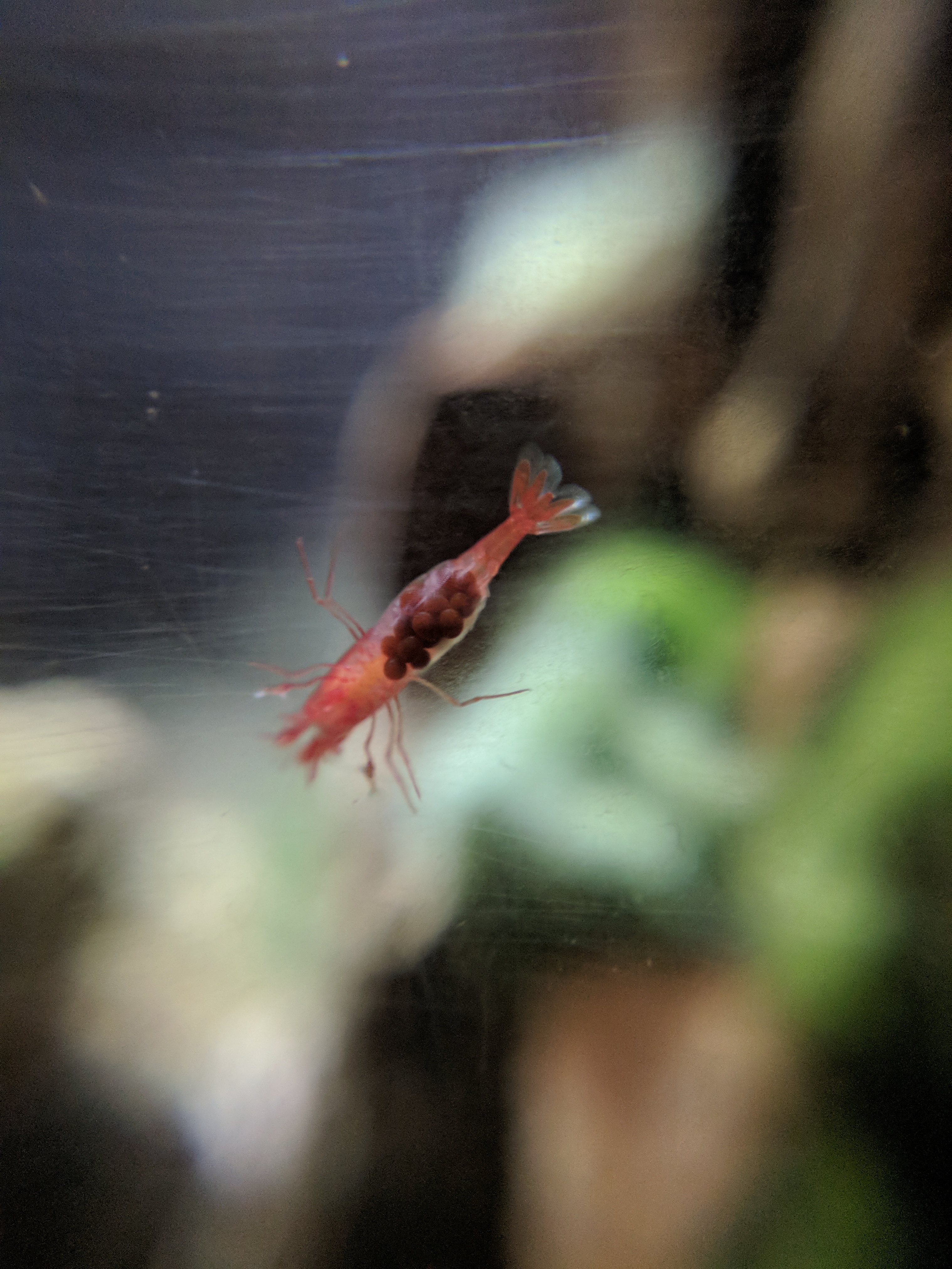 It's almost been a year of waiting.. and I was afraid maybe my keyboard typing was too disruptive since the tank is on computer desk.. but I see my first berried shrimp! So excited!!