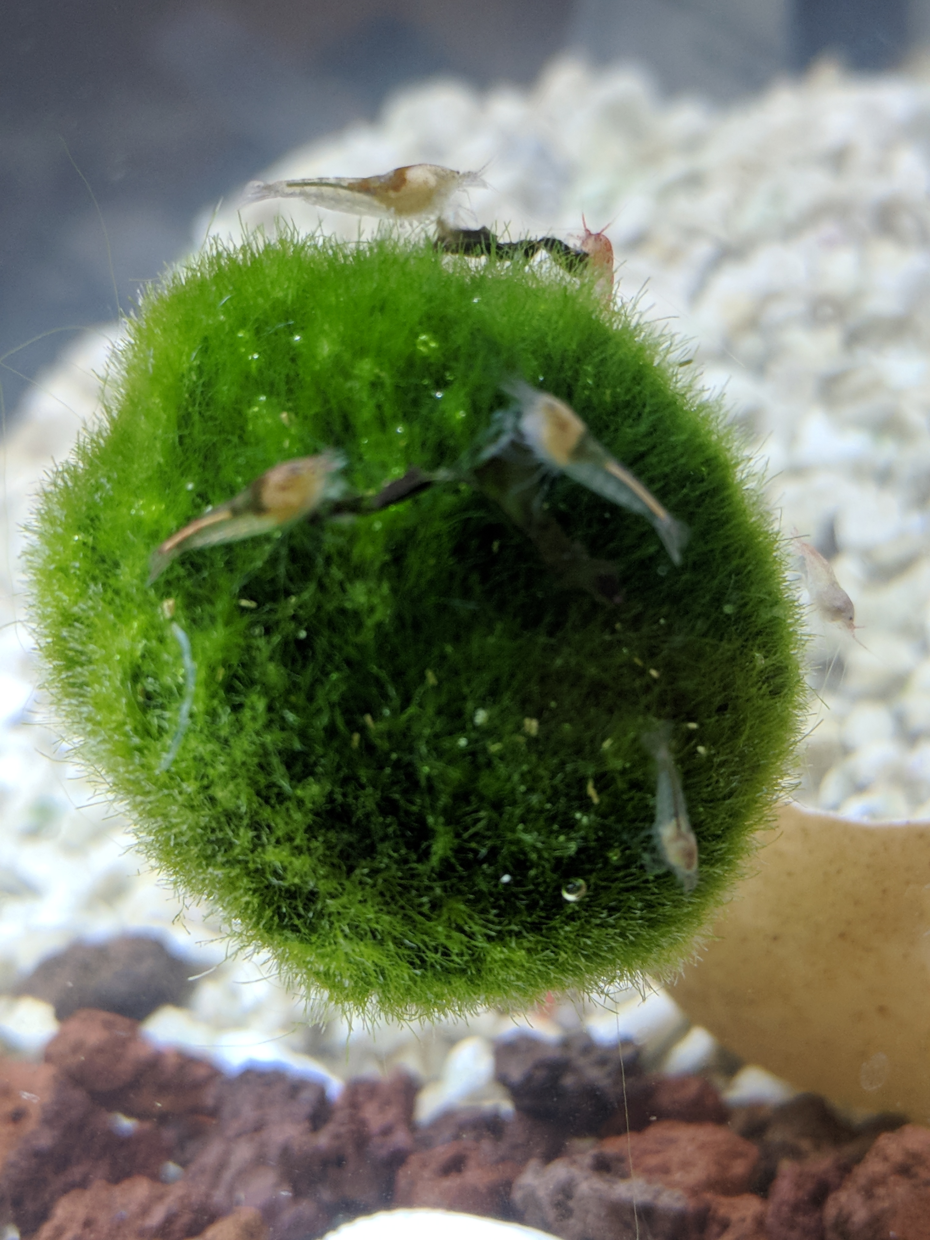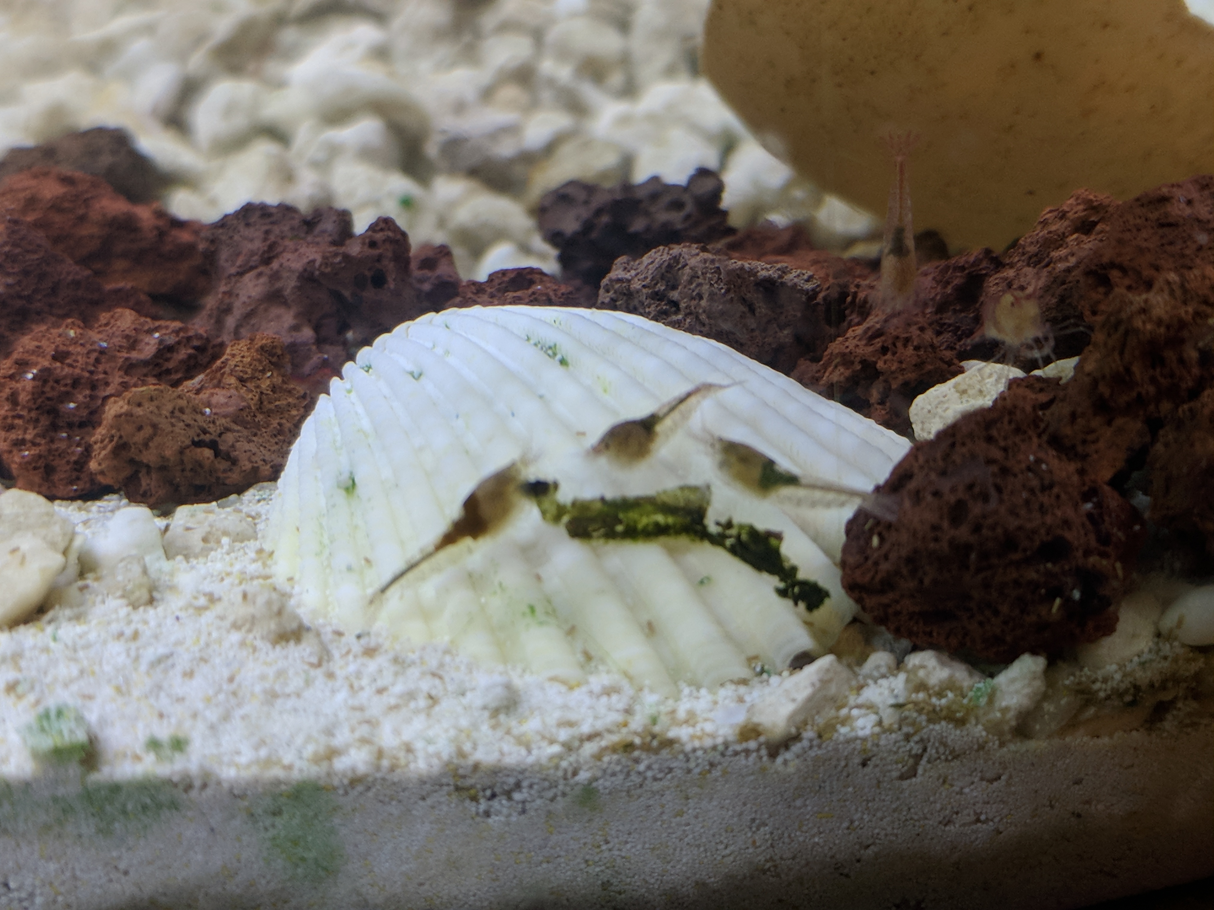 My supershrimp tank almost clear no more algae left, so i chose safe way, i did scraped algae flake from my other tank that almost dry on the surface of my tank lid of freshwater tank and these are pictures of my supershrimp so happy enjoying the algae flakes.