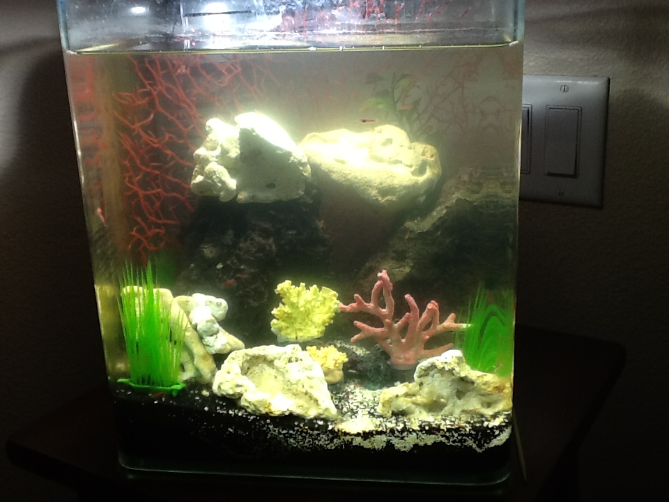 My tank is very small but it is spotless. I had two nerite snails in it, but I recently put one of them in my freshwater tank because I was afraid they would run out of food. I've been thinking about taking the second one out as well. Nerites are wonderful little algae eaters!