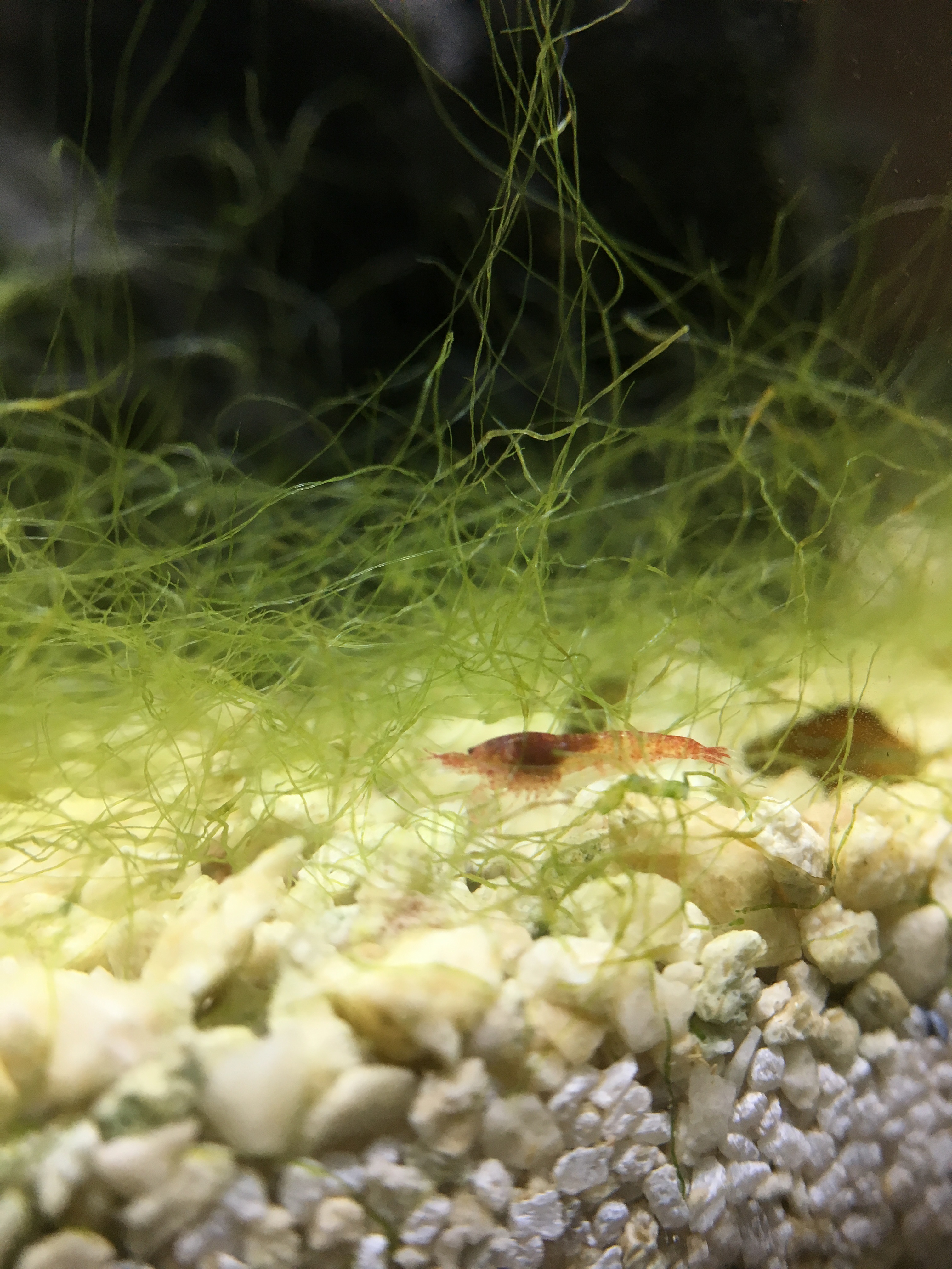 Thanks for the advice. I don’t remember doing anything different at the time. The hair algae hasn’t come back though so yay. There’s still a few small wisps but that’s it. Here’s a small strand of macroalgae that was leftover and seems to be doing well. Maybe it’ll grow! The shrimp seem ok, found 11 bobbers yesterday.
