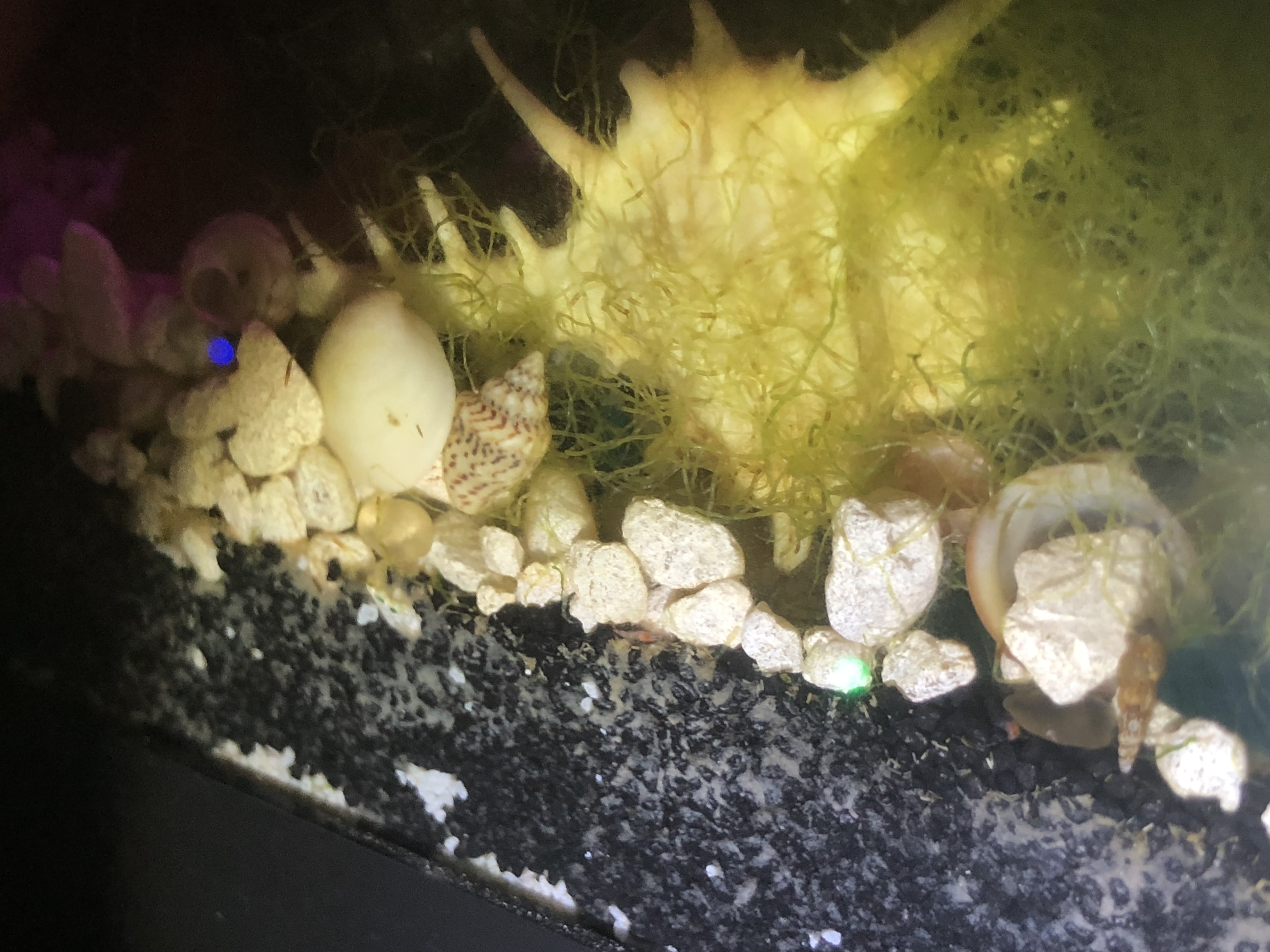 Tank wasn’t getting much light, so the macroalgae has wilted and strands have started to break down and die. Starting keeping an LED on during the day to keep it from dying off completely. Hopefully that doesn’t affect the larvae negatively in any way. The larvae seem to like hanging out under the LED.