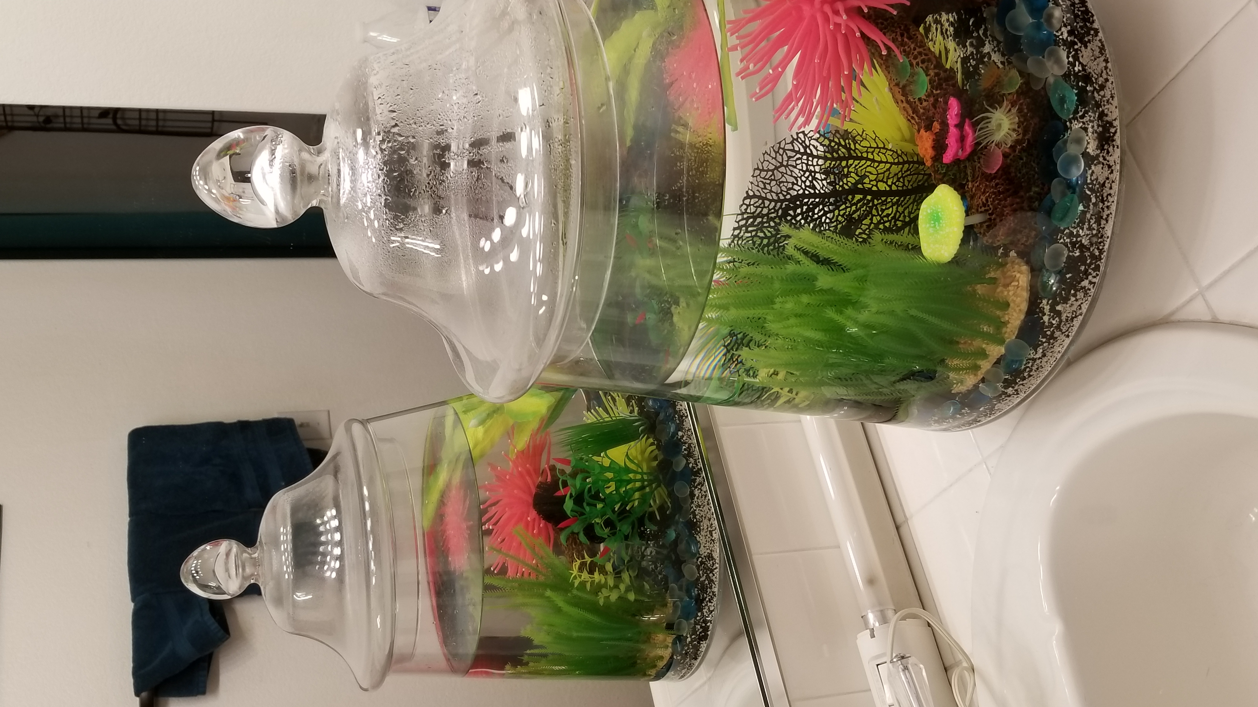 For tanks, pretty much any container will work. I prefer glass for better optics, but there are also some nice small acrylic tank options available (even at Petco). Choose a container that is relatively easy to reach into and can be covered.