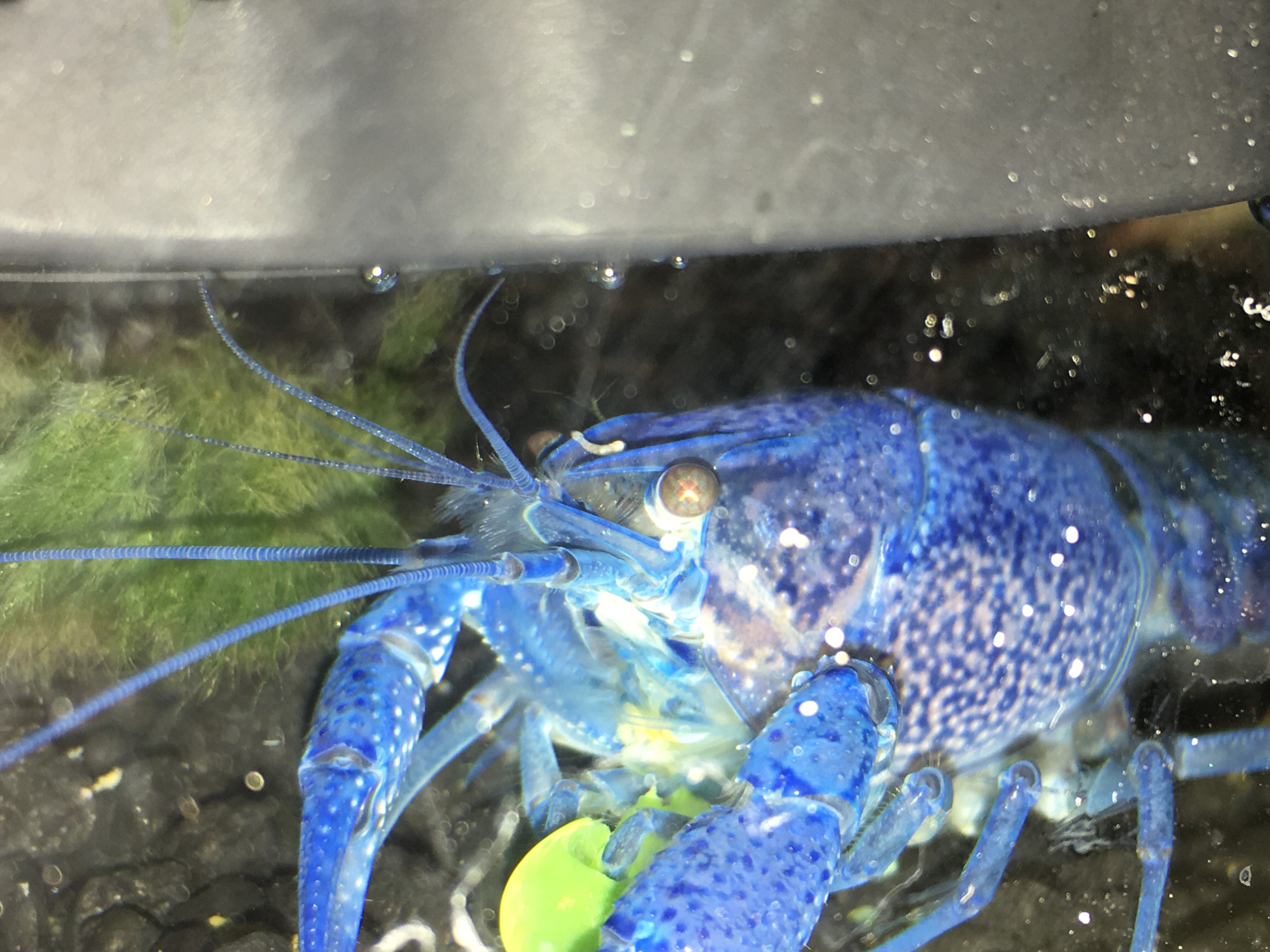 hi new to the forum so I have an electric blue crayfish that has a single long white worm attached to his head and it just wiggles around all day I found some things that say they can have beneficial worms but this doesn’t look like the pictures I found of that I’ll attach a picture below .