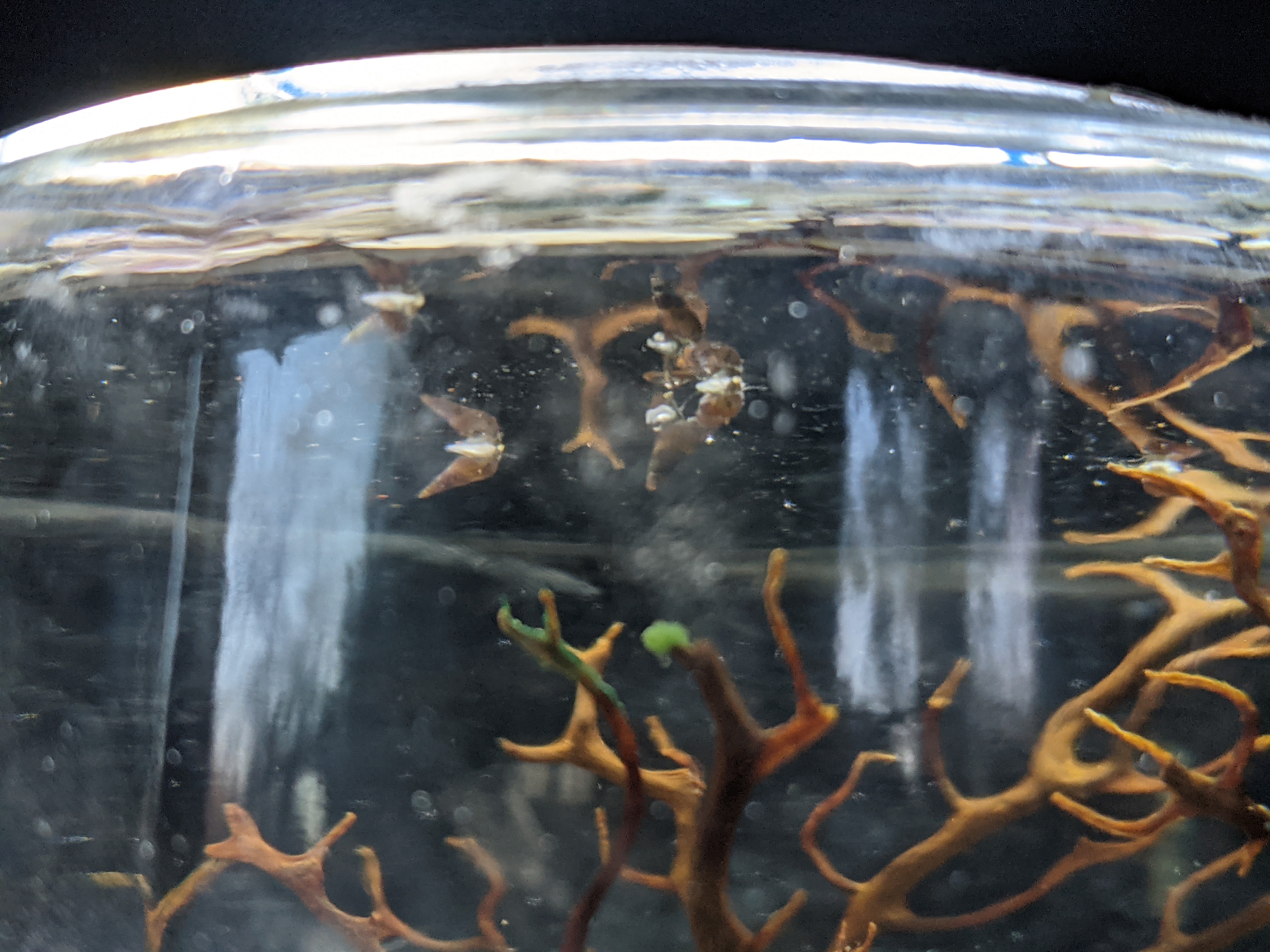 Yes, they are feeding. Mine do this when I put spirulina powder on the surface.