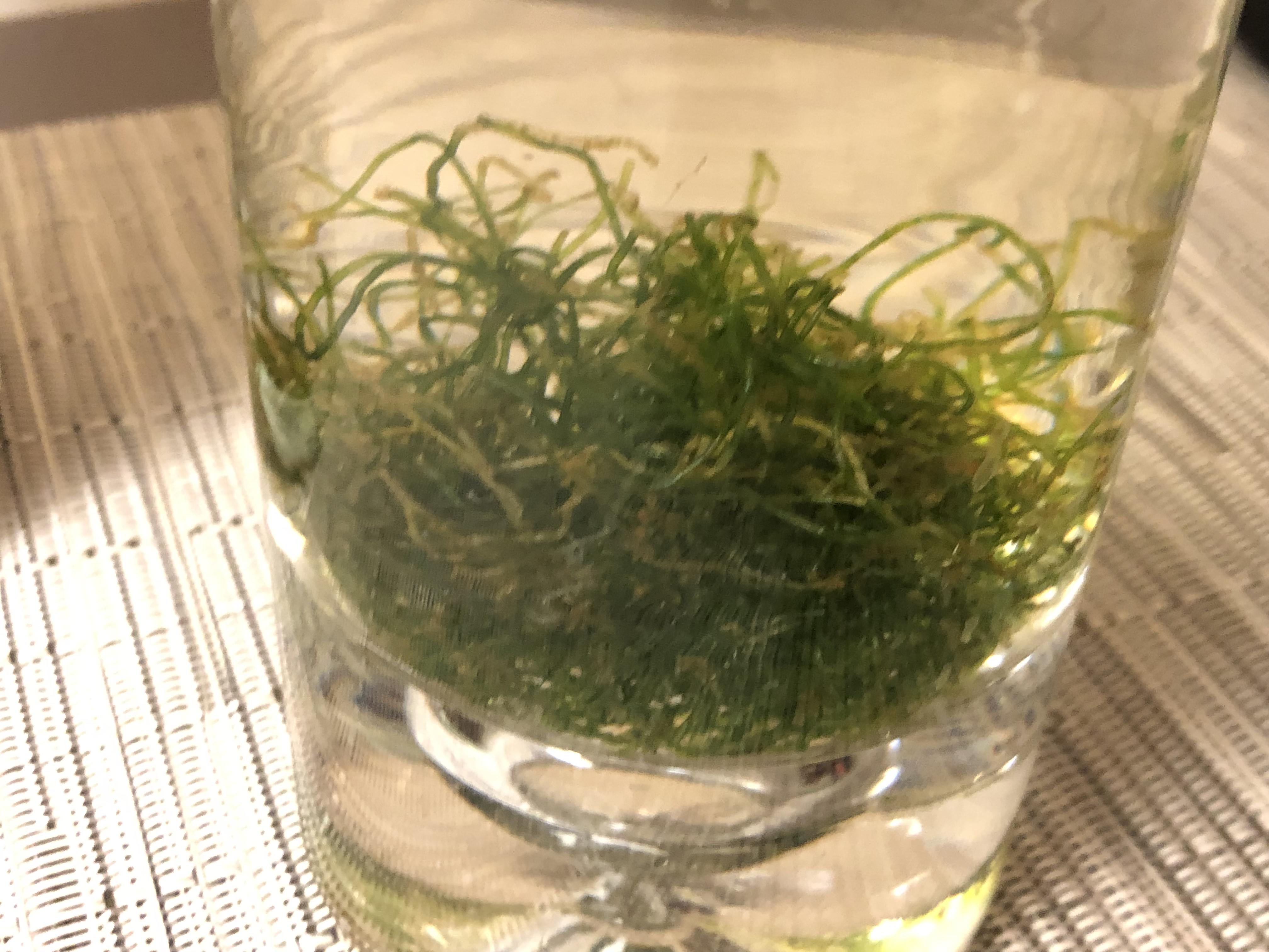 It looks like the saltwater stuff sold for reef tanks. That stuff always turns white and falls apart over time. The macroalgae available here is a different species/variety that does well in very low salinity water.