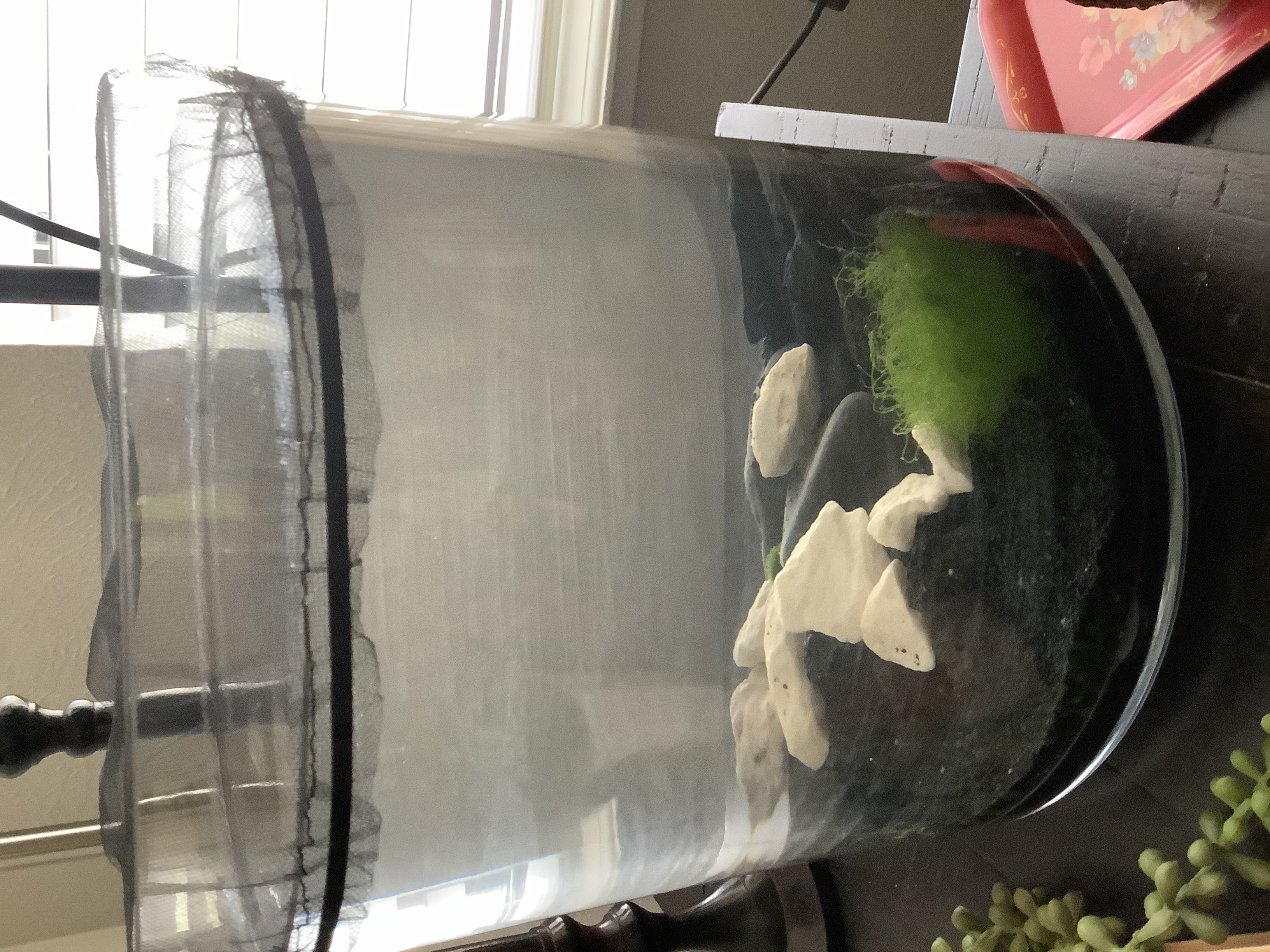 Week 1: Set up tank. Add macroalgae. Add moss ball. Both ordered from Mustafa so they had some bacteria already growing on them. Add a pinch of Spirulina flakes crushed up.