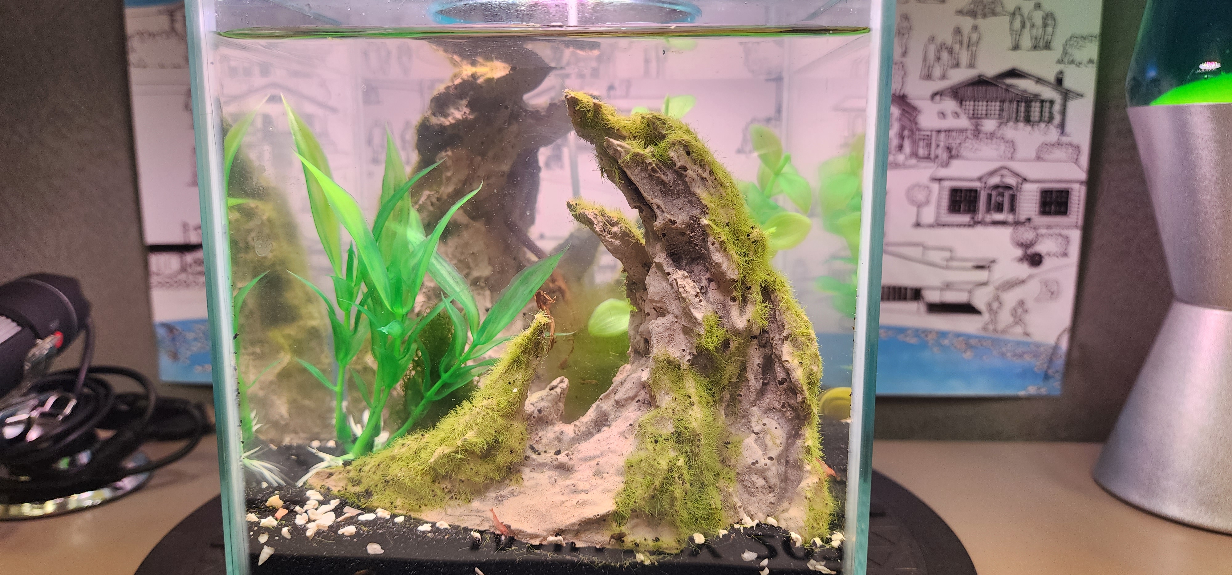 Mine is doing this too. I got a small filter that I run for a few hours a day seems to help. I will be setting up a new tank soon as all the parts get here the one I have my shrimp got into the filter tank. Thank Goodness I had not turned it on.